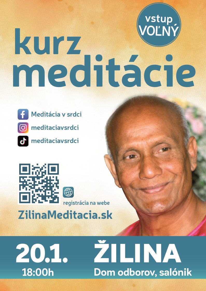 Skúsení inštruktori vás povedú cez jednoduché a účinné meditačné techniky. Sri Chinmoy žil v rokoch 1931 až 2007. V približne 300 strediskách meditácie v 50 krajinách sa dnes každý môže naučiť ako meditovať.Sri Chinmoy bol skvelý muž. Boh sa usmieva vediac o nesmiernom dobre ktoré dosiahol a ktoré aj v iných podporoval. Vo svete podozrenia, nepriateľstva a konfliktov, neúnavne pracoval na tom, aby spájal rôzne náboženské smery a inšpiroval mnohých aby ho nasledovali."- nositeľ Nobelovej ceny mieru arcibiskup Desmond Tutu